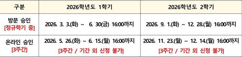 매 학기 3주간 신청 가능 (기간 외 신청 불가)